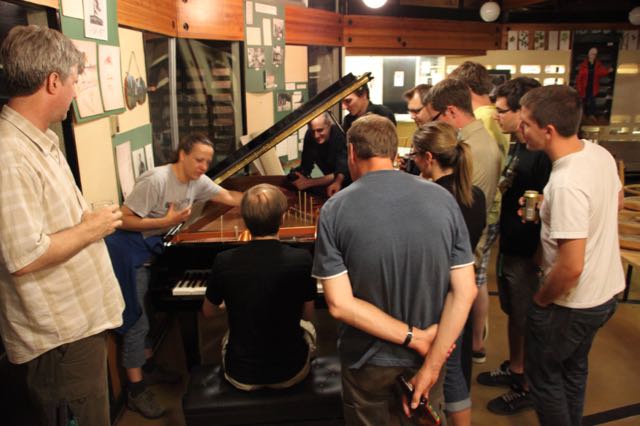 ICCC Linking Fellow David Braid showing people his prepared piano at Kenderdine Campus