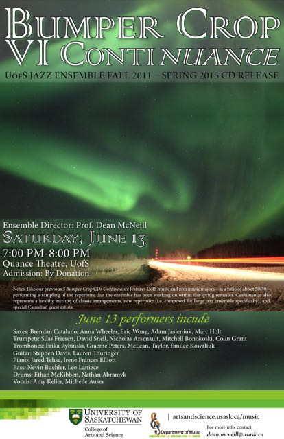 • 2015 *Bumper Crop VI Continuance, U of S Jazz Ensemble