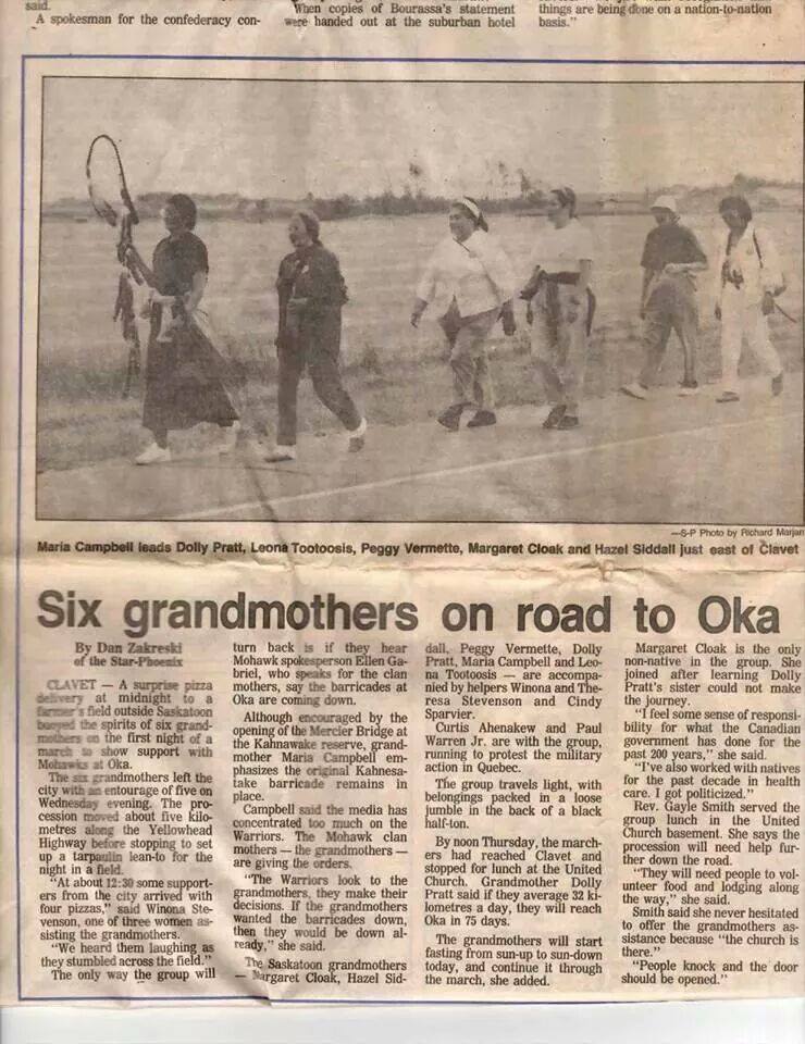 Grandmothers march, Saskatoon to Oka, August 1990