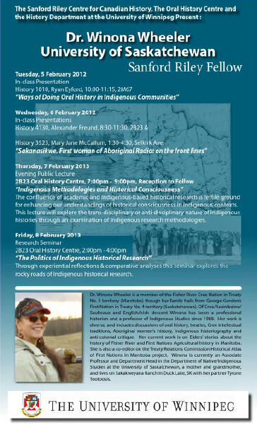 Sanford Riley Fellow, University of Winnipeg, February 2012