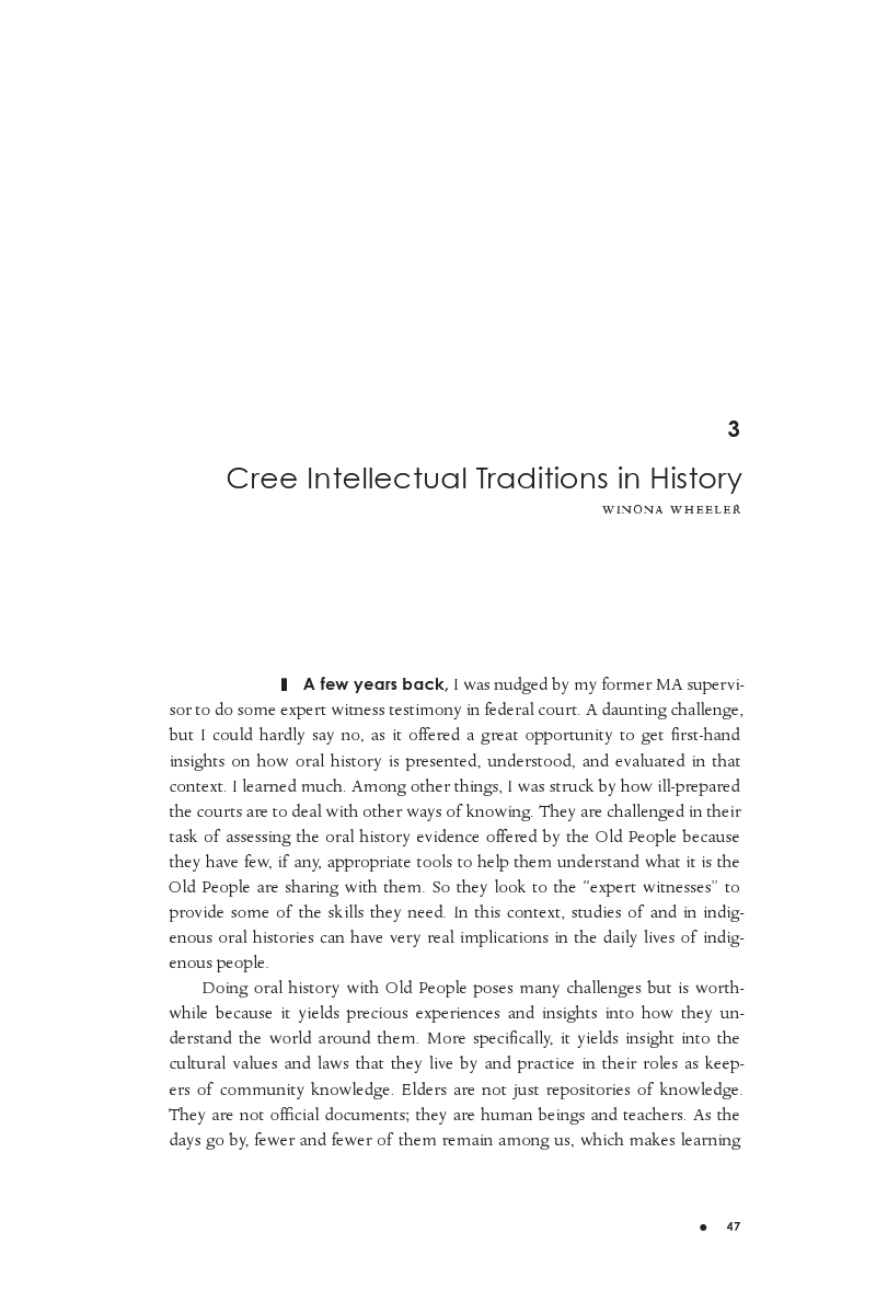 - Cree intellectual traditions and oral history methodologies